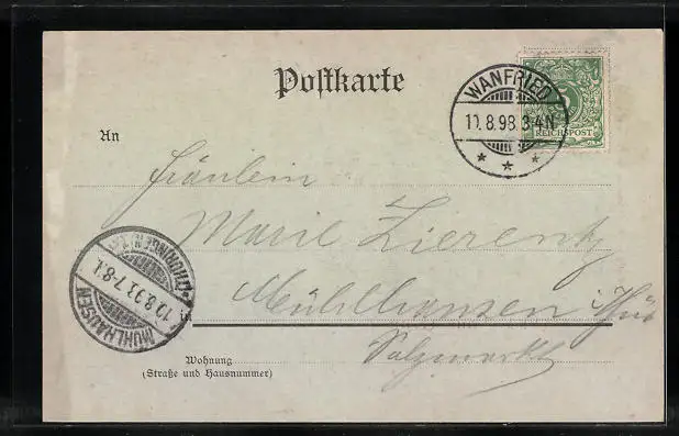 alte Ansichtskarte, gelaufen 1898, Stempelspur, guter Zustand