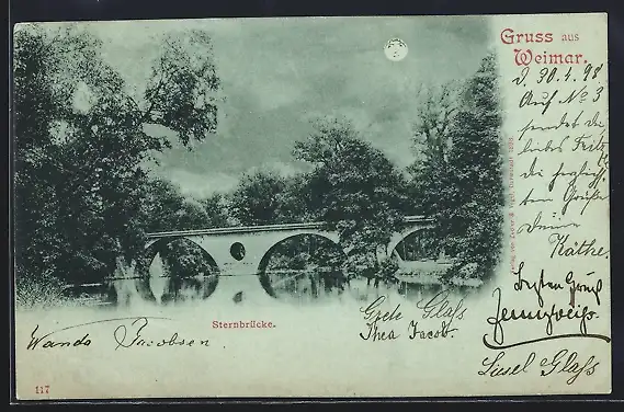 Mondschein-AK Weimar / Thüringen, Sternbrücke