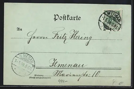alte Ansichtskarte, gelaufen 1898, guter Zustand