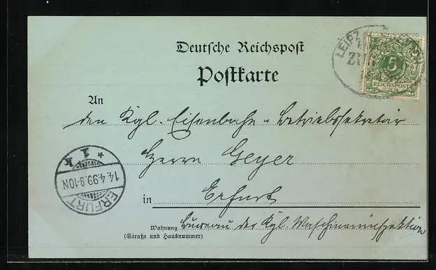 alte Ansichtskarte, gelaufen 1899, guter Zustand