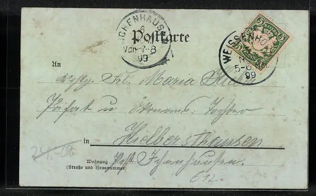 alte Ansichtskarte, gelaufen 1899, Eckknick links oben, guter Zustand