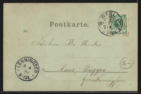 alte Ansichtskarte, gelaufen 1899, guter Zustand