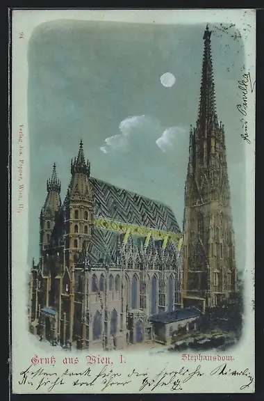 Mondschein-AK Wien, Ansicht vom Stephansdom