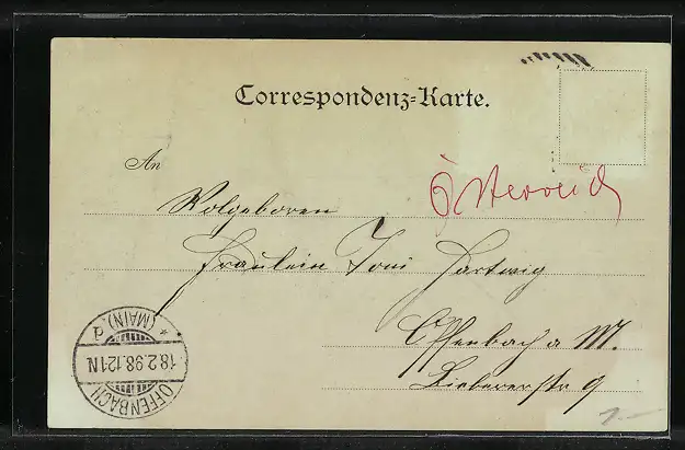 gelaufen 1898, Stempelspur, Briefmarke entfernt, guter Zustand