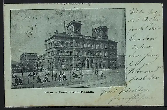 Mondschein-AK Wien, Franz Josefs-Bahnhof und Litfasssäule