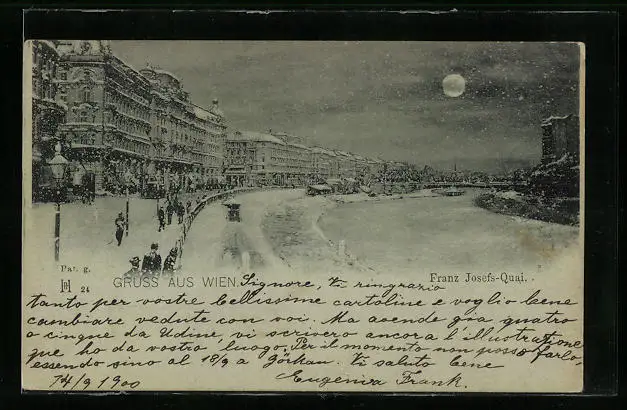 Mondschein-AK Wien, Franz-Josefs-Kai im Schnee