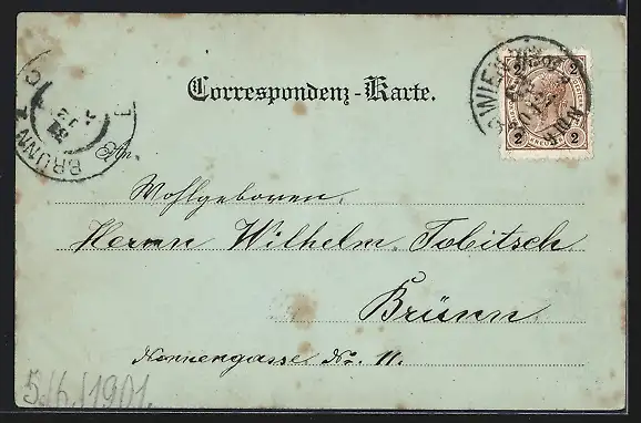 alte Ansichtskarte, gelaufen 1901, guter Zustand