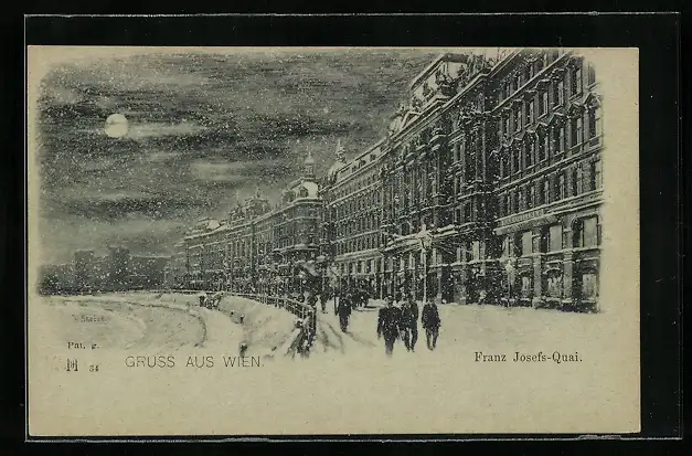 Mondschein-AK Wien, Franz Josefs-Quai bei Schneefall