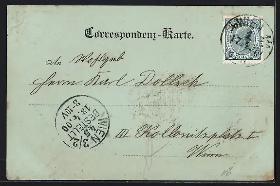 alte Ansichtskarte, gelaufen 1900, guter Zustand