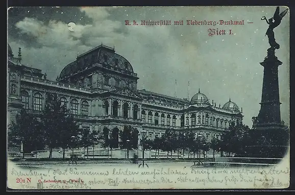 Mondschein-AK Wien, K. k. Universität mit Liebenberg-Denkmal