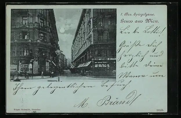 Mondschein-AK Wien, Ladengeschäfte in der Spiegelgasse
