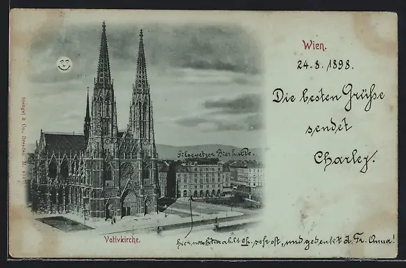 Mondschein-AK Wien, die Votivkirche am Maximiliansplatz