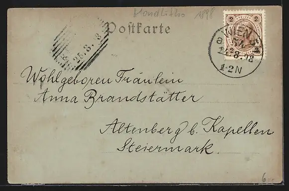 alte Ansichtskarte, gelaufen 1898, guter Zustand
