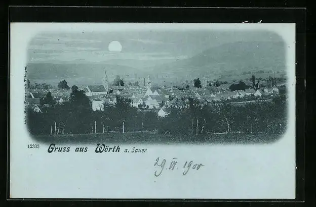 Mondschein-AK Wörth a. Sauer, Teilansicht
