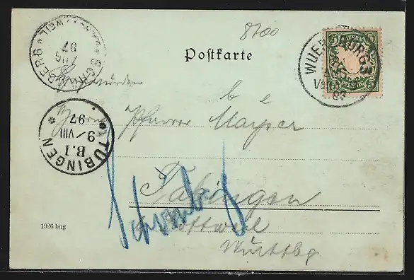 alte Ansichtskarte, gelaufen 1897, guter Zustand