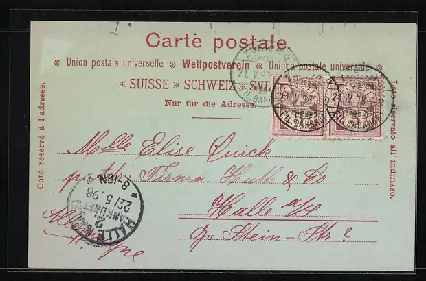 alte Ansichtskarte, gelaufen 1898, guter Zustand