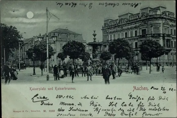 Mondschein Ak Aachen, Kaiserplatz, Kaiserbrunnen