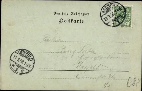 Zustand, siehe Scan, gelaufen, 1898 - ca 14 cm X 9 cm