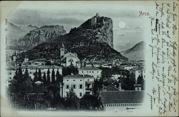 Mondschein Ak Arco Trentino, Teilansicht vom Ort bei Nacht