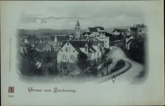 Mondschein Ak Backnang in Württemberg, Totalansicht der Ortschaft