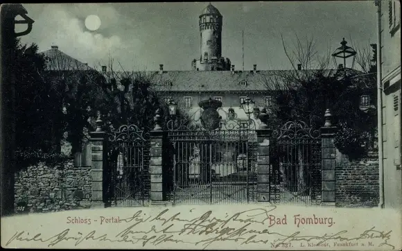 Mondschein Ak Bad Homburg vor der Höhe Hessen, Schloss, Portal