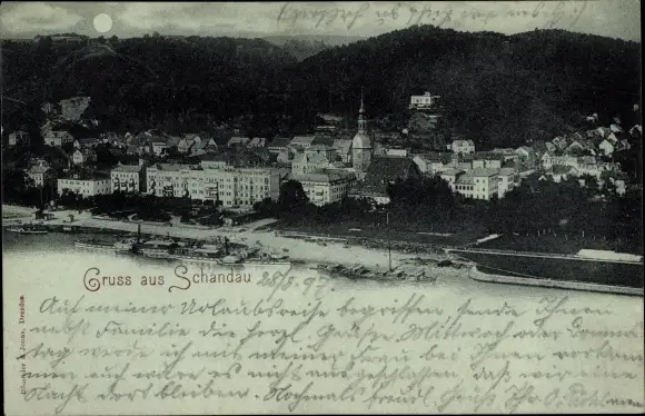 Mondschein Ak Bad Schandau Sächsische Schweiz, Totalansicht