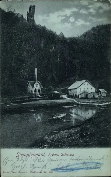 Mondschein Ak Behringersmühle Gößweinstein in Oberfranken, Stempfermühle