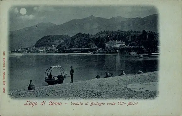Mondschein Ak Bellagio Lago di Como Lombardia, Veduta colla Villa Melzi