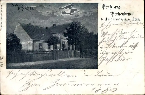 Mondschein Ak Berkenbrück Landkreis Oder Spree, Restaurant