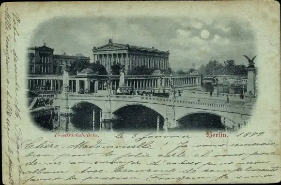 Mondschein Ak Berlin Mitte, Friedrichsbrücke