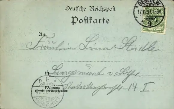 Zustand, siehe Scan, gelaufen, 1897 - ca 15 cm X 9 cm