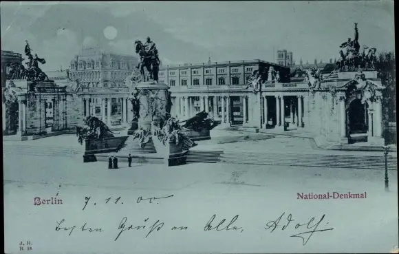 Mondschein Ak Berlin Mitte, National-Denkmal