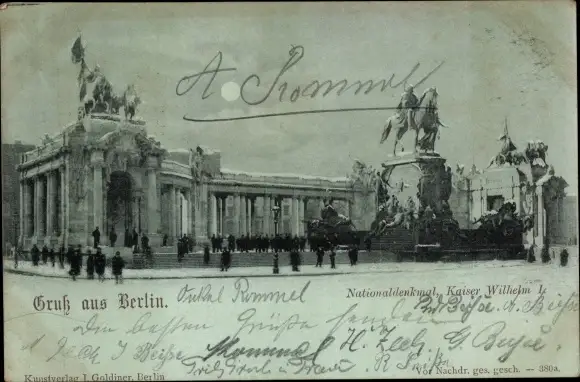 Mondschein Ak Berlin Mitte, Nationaldenkmal, Kaiser Wilhelm I.