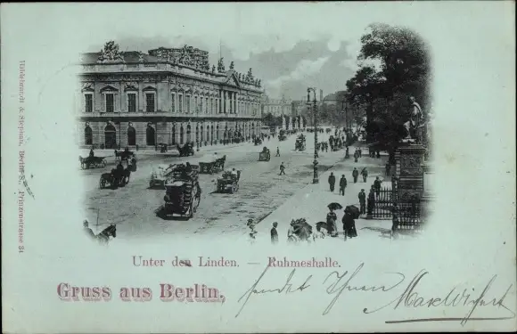 Mondschein Ak Berlin Mitte, Unter den Linden, Ruhmeshalle