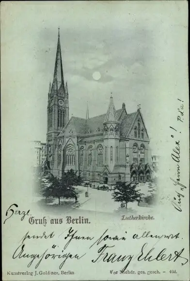 Mondschein Ak Berlin Schöneberg, Blick auf die Lutherkirche