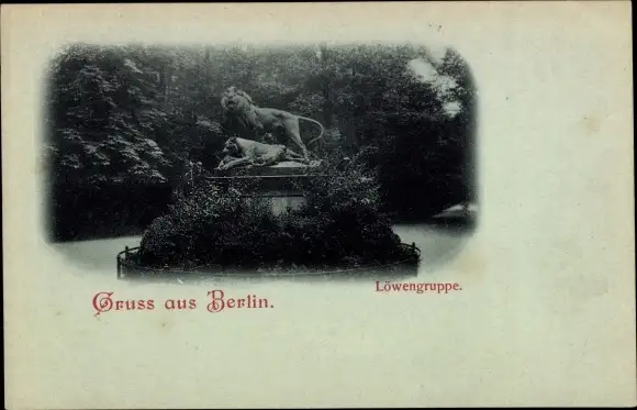 Mondschein Ak Berlin Tiergarten, Löwengruppe, Standbild