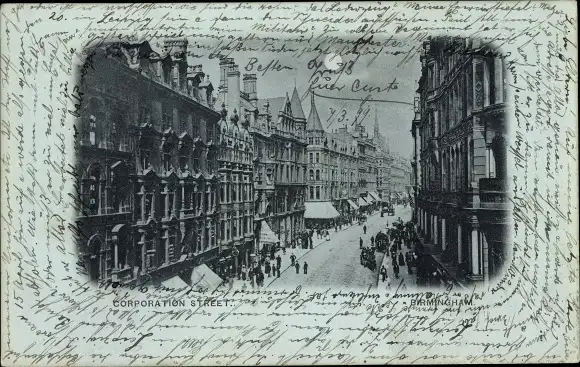 Mondschein Ak Birmingham West Midlands England, Corporation Street