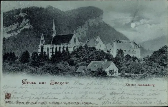 Mondschein Ak Bregenz am Bodensee Vorarlberg, Kloster Riedenburg