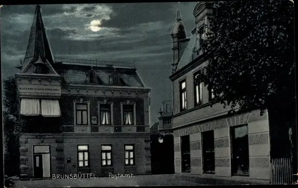 Mondschein Ak Brunsbüttel in Dithmarschen, Postamt