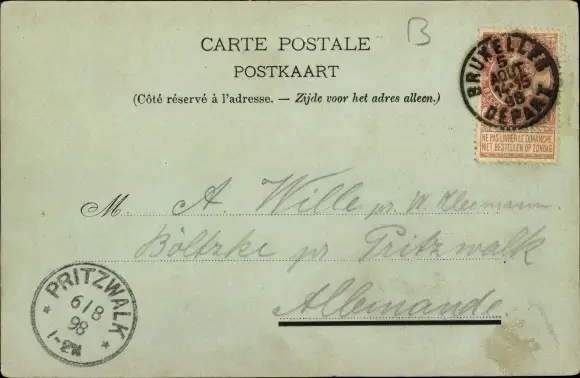 Zustand, siehe Scan, gelaufen, 1898 - ca 14 cm X 9 cm