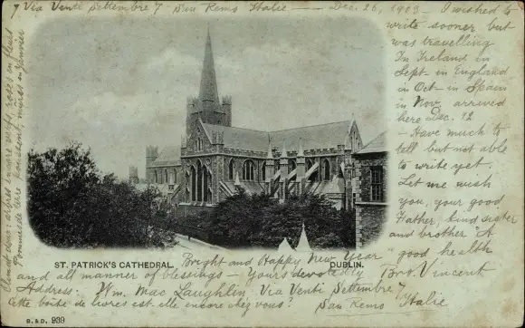 Mondschein Ak Dublin Irland, St. Patrick's Cathedral