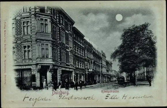 Mondschein Ak Duisburg im Ruhrgebiet, Königstraße