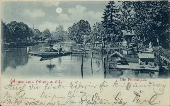 Mondschein Ak Eberswalde in Brandenburg, Die Promenade