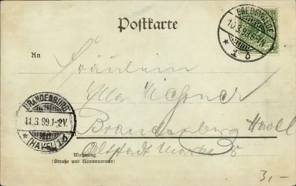 Zustand, siehe Scan, gelaufen, 1899 - ca 14 cm X 9 cm