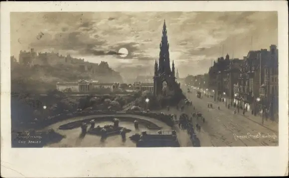 Mondschein Ak Edinburgh Schottland, Princess Street