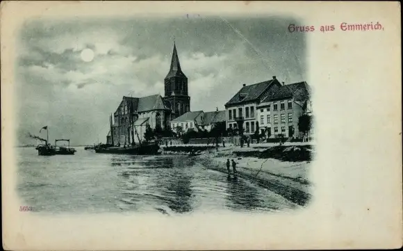Mondschein Ak Emmerich am Niederrhein, Teilansicht
