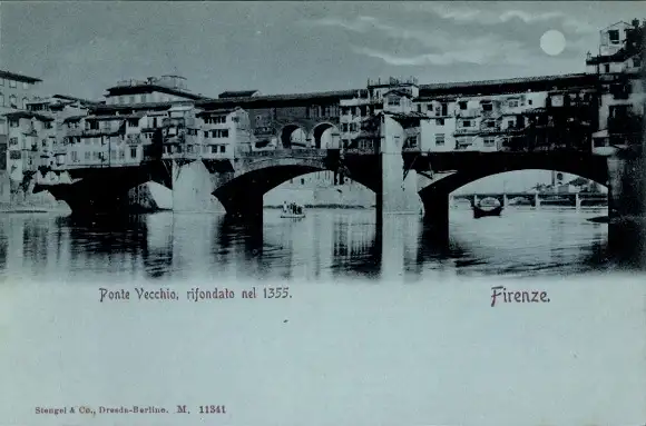 Mondschein Ak Firenze Florenz Toscana, Vecchio Brücke