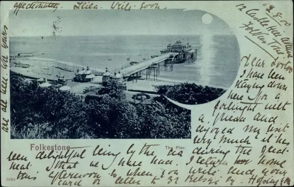Mondschein Ak Folkestone Kent South East England, The Pier