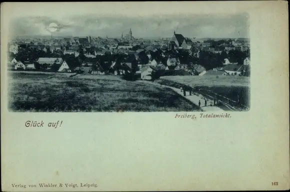 Mondschein Ak Freiberg in Sachsen, Totalansicht