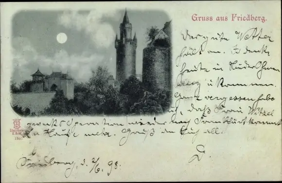 Mondschein Ak Friedberg in Hessen, Der Adolfsturm